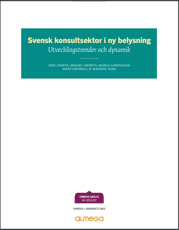 Vinnova har släppt denna rapport som kartlägger de kunskapsintensiva tjänsteleverantörerna i Sverige (konsultsektorn). Detta är första gången någonsin som en satsning görs för att åskådliggöra den ständigt växande och framgångsrika konsultsektorn. I tidigare branschkartläggningar har Vinnova fokuserat på enskilda tematiska branscher. Ofta har då de nyckelföretag som levererar tjänster till en mängd olika branscher inte kunnat fångas upp och därmed blivit osynliga.
